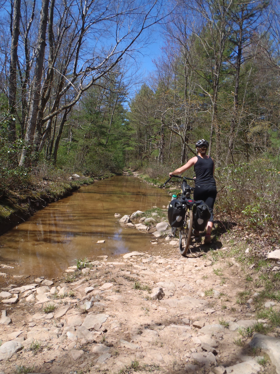 I was finally really in the groove, the serenity of the woods helping me maintain a positive mindset even through the miles of climbing. I quickly buried thoughts of wanting to stop and rest, knowing that the trick to getting through it was to keep moving. Slow as the going may be, just keep pedaling. And don’t forget to look around, at the trees with fresh new light green leaves, the bright blue sky, the mountains and valleys and all that lies between. Just because it may be hard doesn’t mean there isn’t much to be enjoyed.