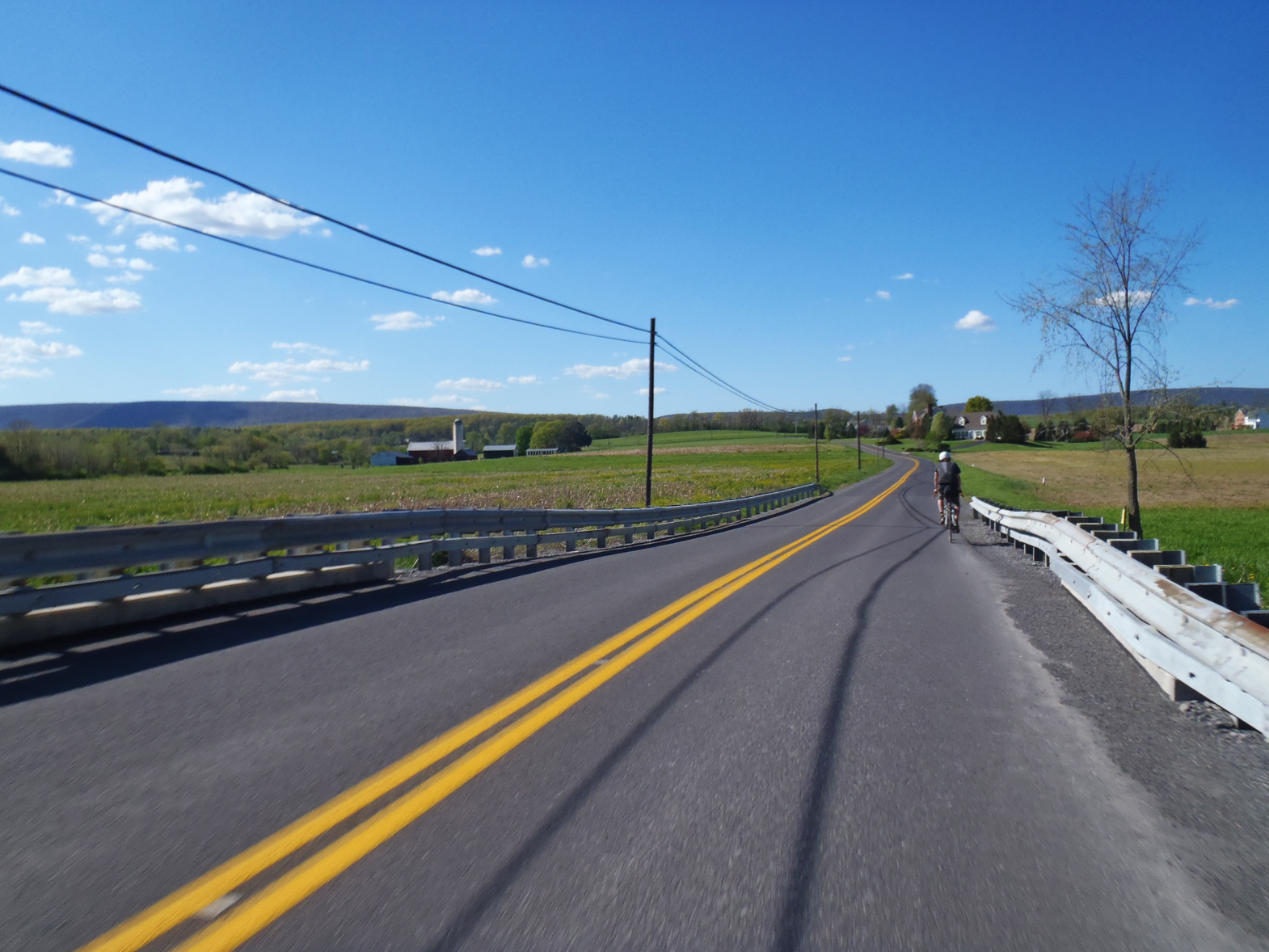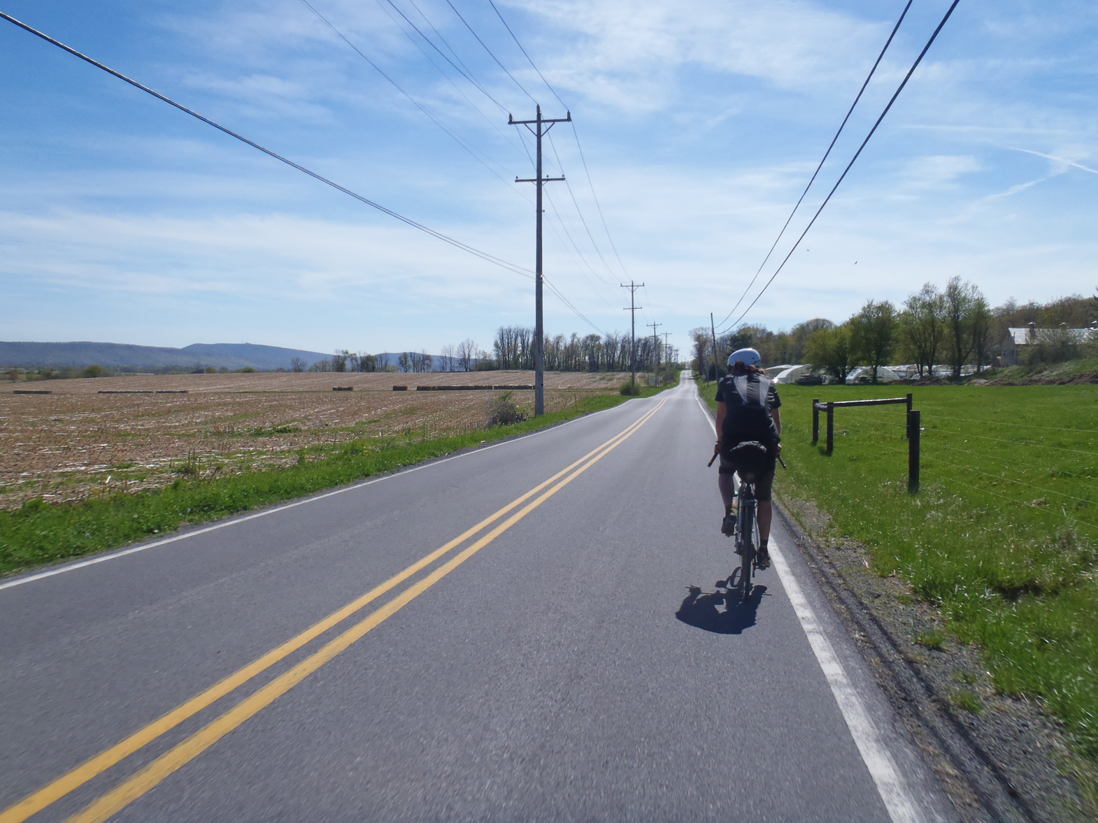 A quick bite to eat and a beer in Millheim and we were back on the road, winding along Pine Creek, through a mix of farmland and woods, the shade of each patch of forest a welcome break from the beating sun. When I walked into the bathroom at lunch I had realized how red my shoulders were getting, and for the first time that day, actually thought about sunscreen—which I had forgotten, of course. I was reluctant to buy some, as I have about 7 tubes of it sitting at home, the result of this being a common item that I fail to bring. But I knew I couldn’t spend two full days in the sun without it or I’d be extra miserable come Monday morning, so I made a mental note to buy some the next chance I could, and put on some long sleeves to save what I could of my shoulders and arms.