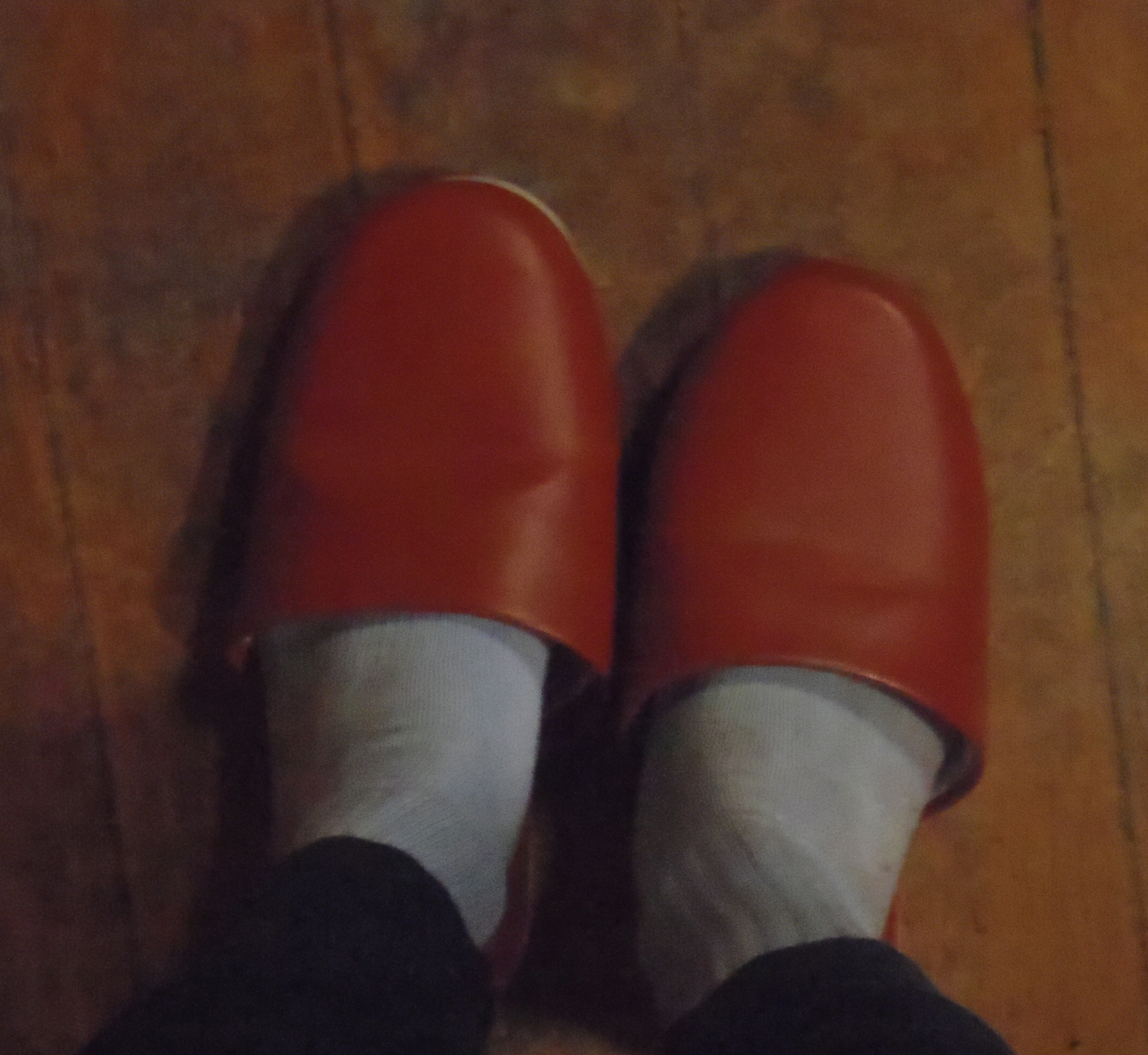 He showed us our room, then explained the uses of the four different pairs of shoes required to navigate one’s way around the cabin. Amanda giggled at a very overwhelmed me as I realized that basically, every time you went into a different room, you had to put on a different pair of slippers. One pair for the entrance area/dining room, one pair for the mud room, one pair for the bathroom, and one pair for the rest of the cabin. But before you go into your bedroom, you must take that pair of slippers off, as shoes (even slippers) in the bedroom is most definitely a no-no in Japan.