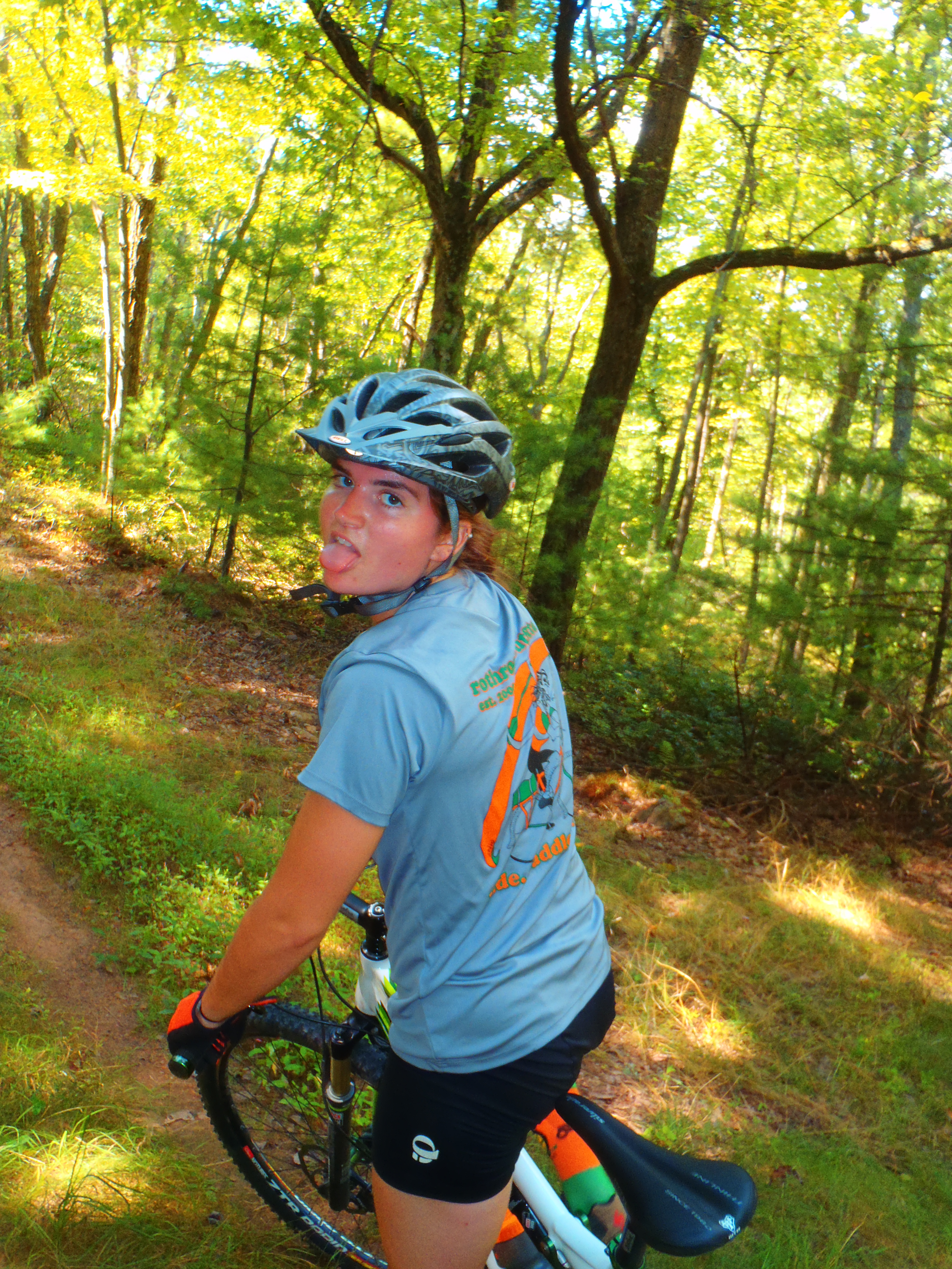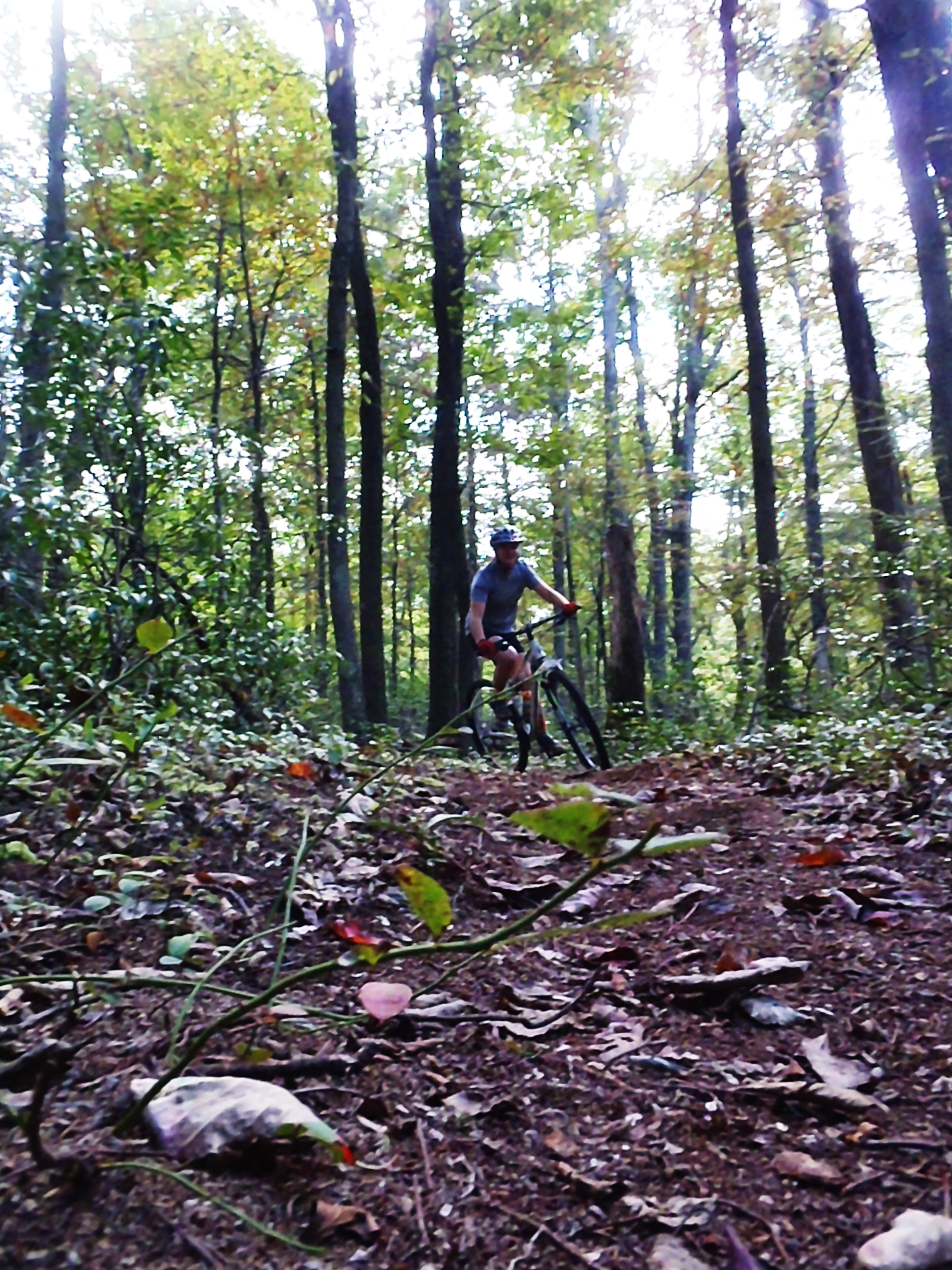 Soon, we found ourselves on the new-to-us Dutch Alvin Trail, whose flowing twists and turns were reminiscent of the Allegrippis, a change from the rocky, technical riding that Rothrock State Forest usually offers. I wound back and forth through the trees, coasting on the slight downhill, a smile plastered on my face, Evan dancing on the pedals in front of me, the wind wicking the sweat off my back.