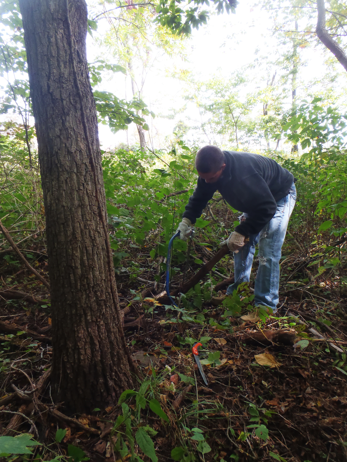 The guys were overzealous about cutting down trees, and they exclaimed with delight every time I told them that they could saw down something relatively large. Most of the girls hung back, meticulously trimming smaller plants, and a raking contingent followed behind them, clearing the trail of the debris we left behind.