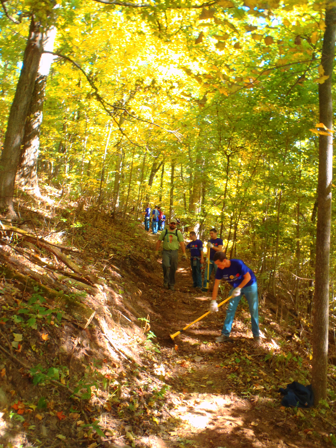 Do I know about trail work? Sure. I’m no expert, but I’ve been to a trail work day or two and I’m fairly decent with a pair of loppers and a leaf blower. Do I know anything about teaching kids how to do trail work, or getting them motivated? No way.