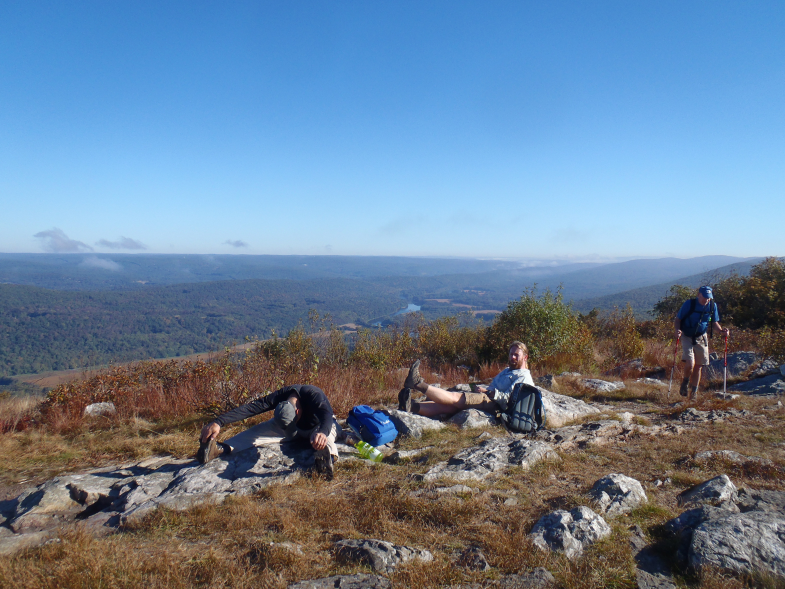 The sun rose higher and higher in the sky, and layers were shed as the world heated up. We ate lunch on a pile of rocks, basking in the midday rays, chatting with several other hikers—a young couple on a weekend backpacking trip, and a hawk-watcher stationed on top of the ridge to count the birds of prey passing through on their southerly migration for the winter.