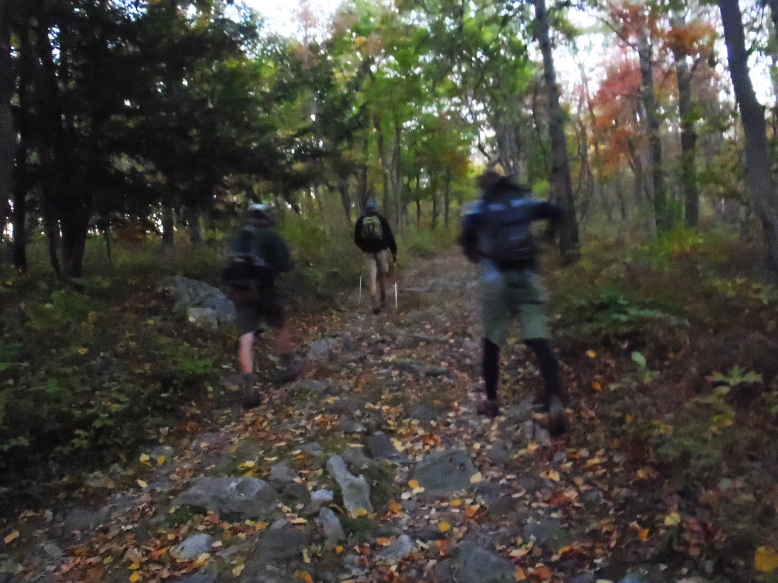 One more stop to stage boats, pick up one more fellow, and we were pulling into a gravel pull-off with the first gray light of day, donning hiking packs and taking off down the white-blazed Appalachian Trail.