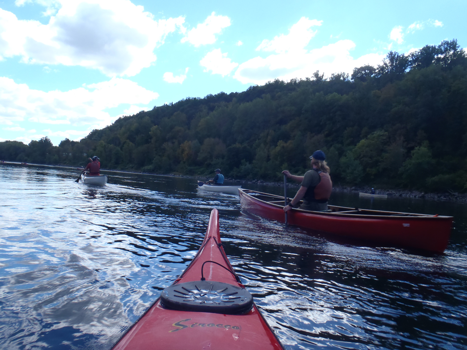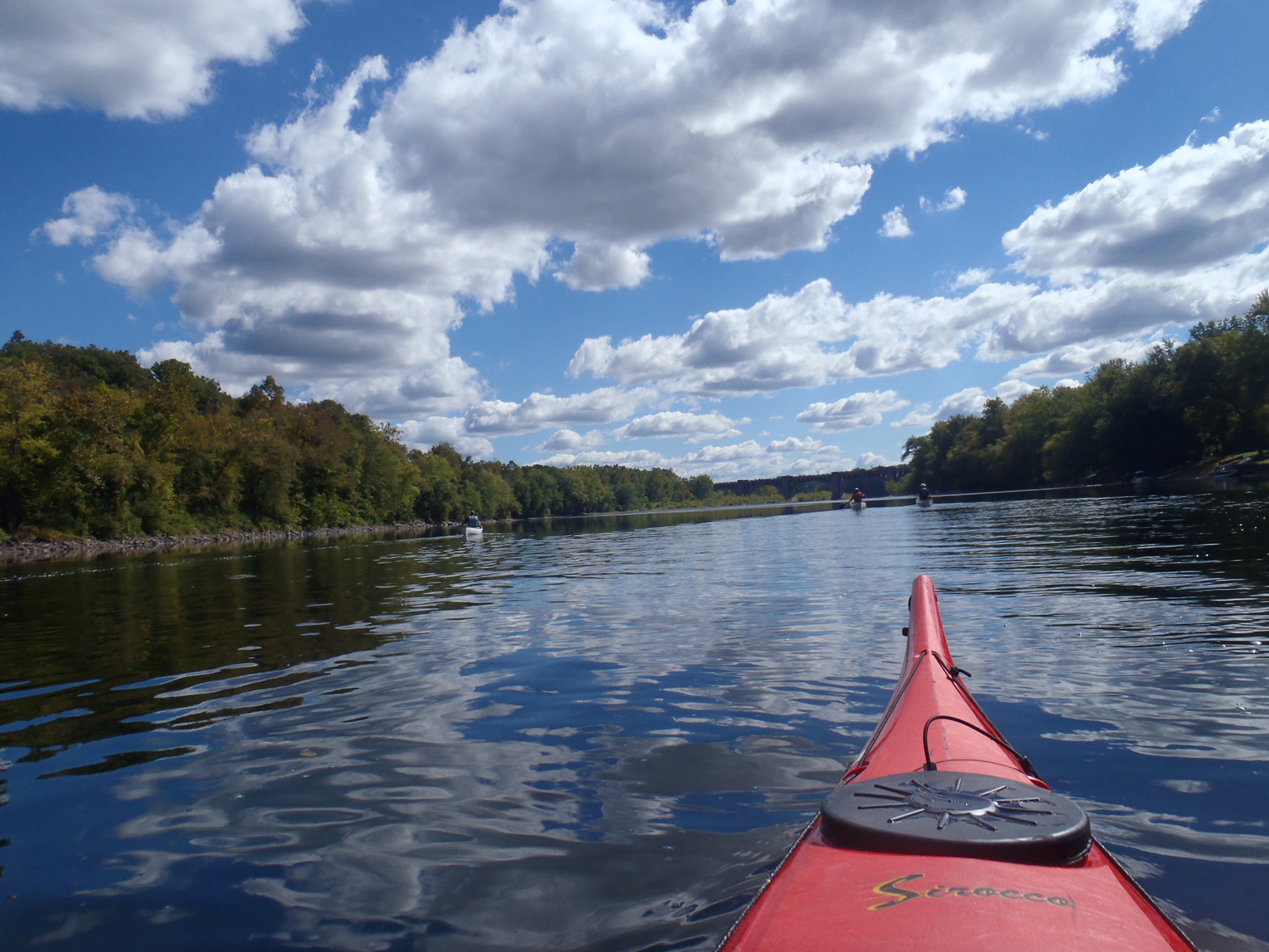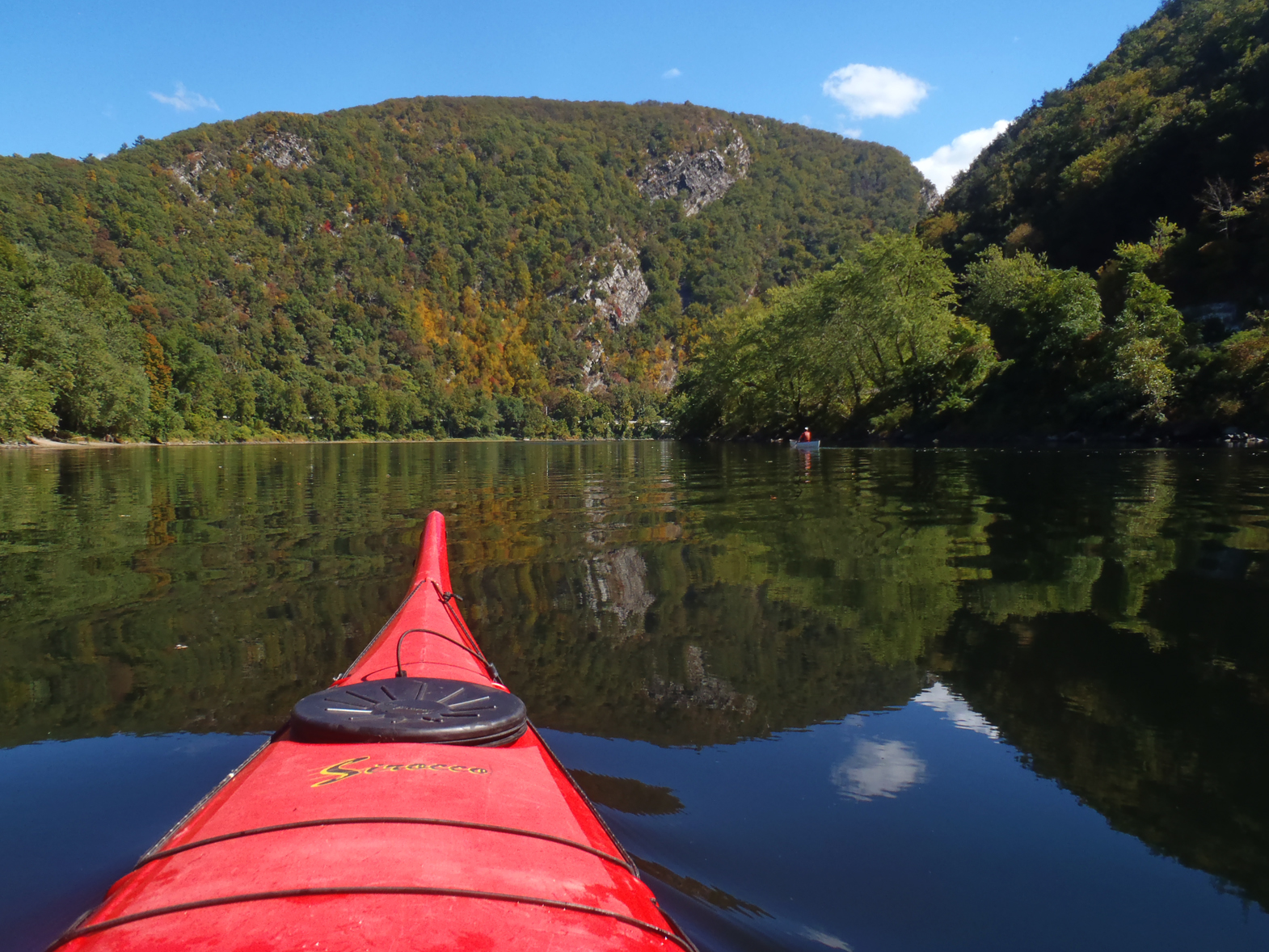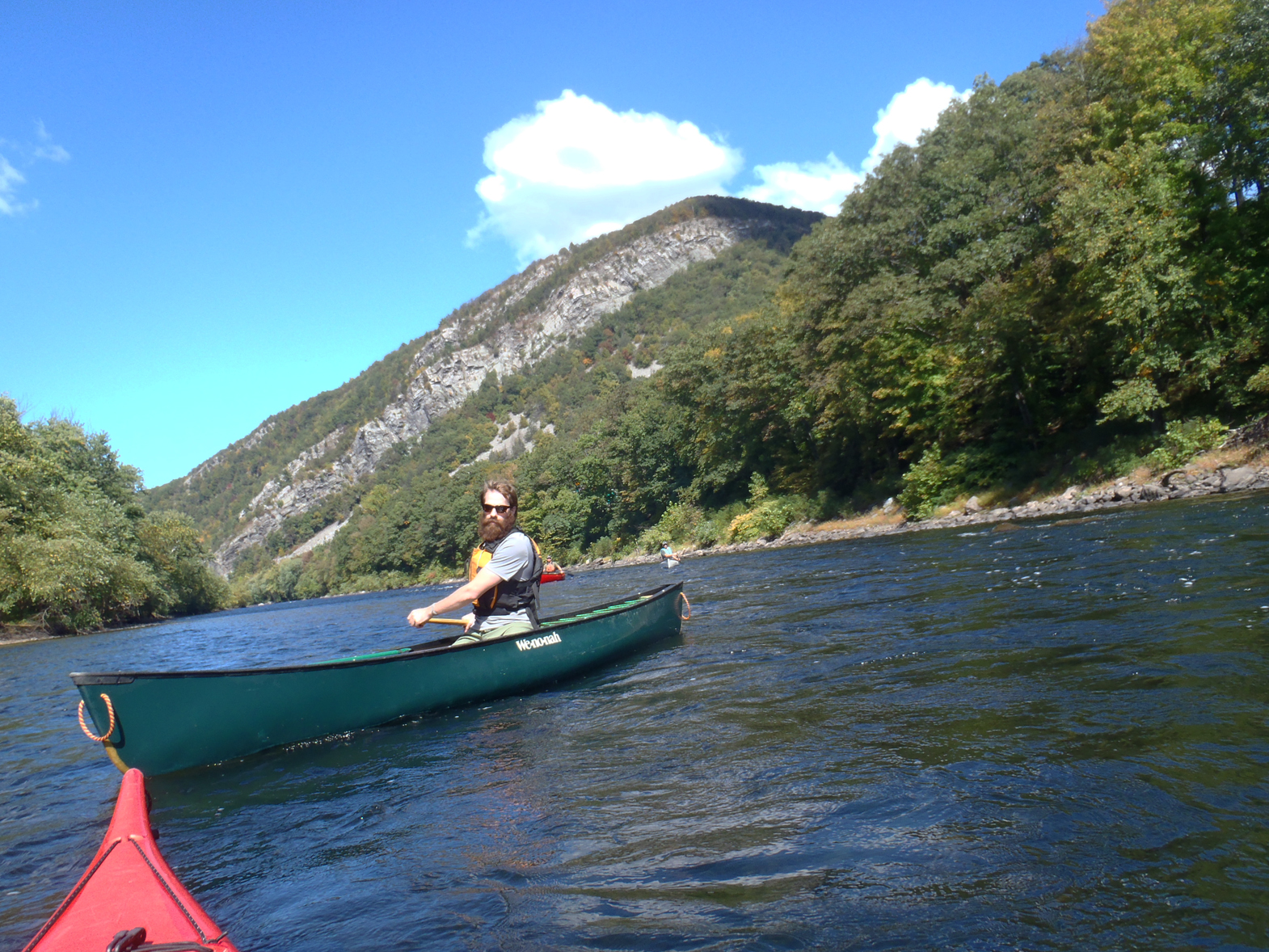 By the time we began descending the ridge down to Delaware Water Gap, my feet were sore and I was more than ready to get in a boat and rest my legs a while. We shoved off a sandy beach onto the Delaware River after a quick transition during which we traded backpacks and hiking shoes for PFDs and drybags, and slathered on sunscreen to protect against the beating sun of midday.