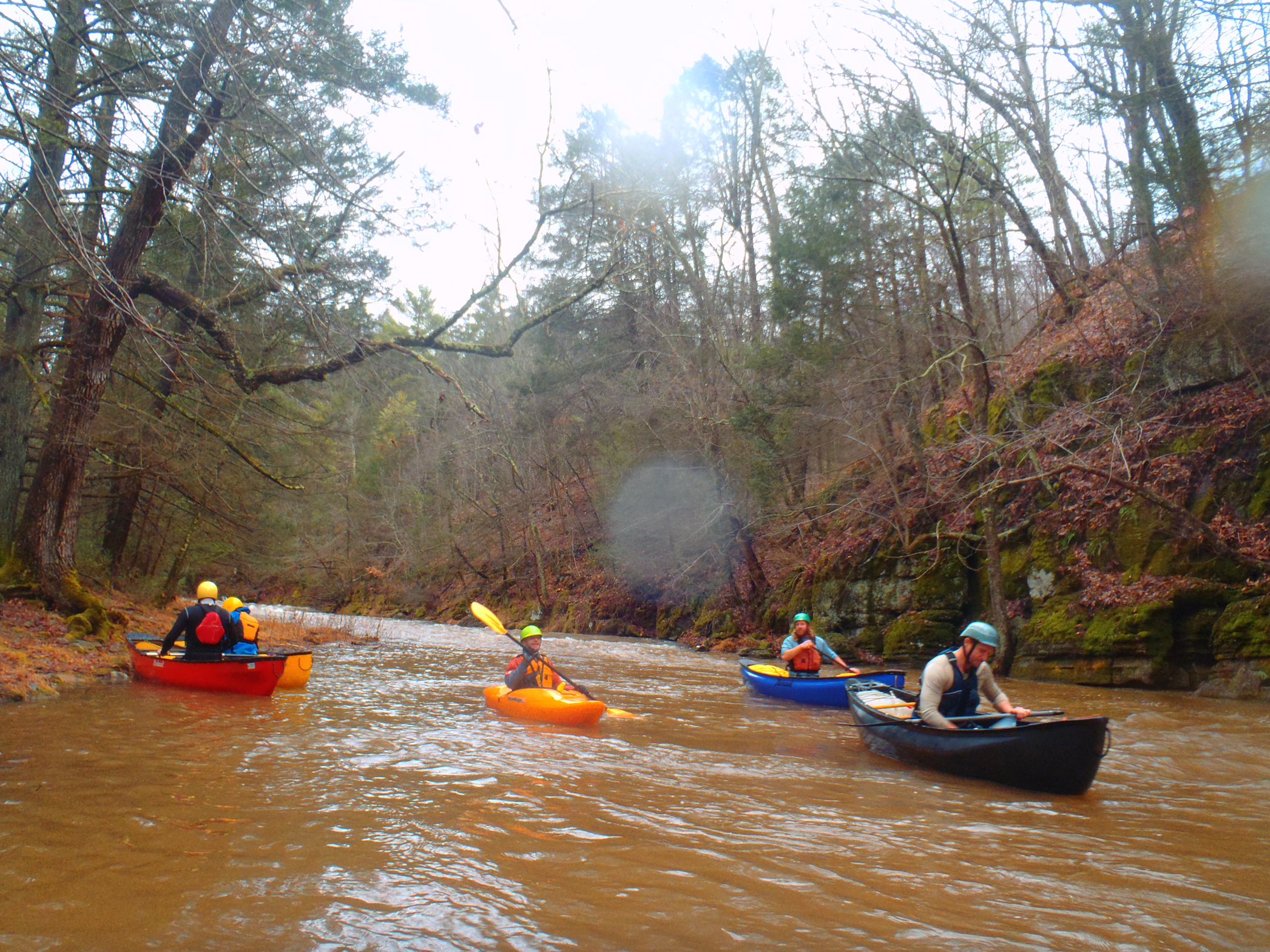 It’s dawn on the ridge. The sky casts an orangey hue over the recently-exposed leafy ground, ground that has been hidden by ever-thickening layers of snow for the past couple weeks—until this weekend, when temperatures climbed into the 50s and the rain washed all signs of winter away. Down the hill, on our lane, canoes sit atop my car, ready for a day on the river. For the past 12 hours, we’ve been checking the river gauges, hoping Trough Creek becomes runnable as we expect it to with all the rain and snowmelt.