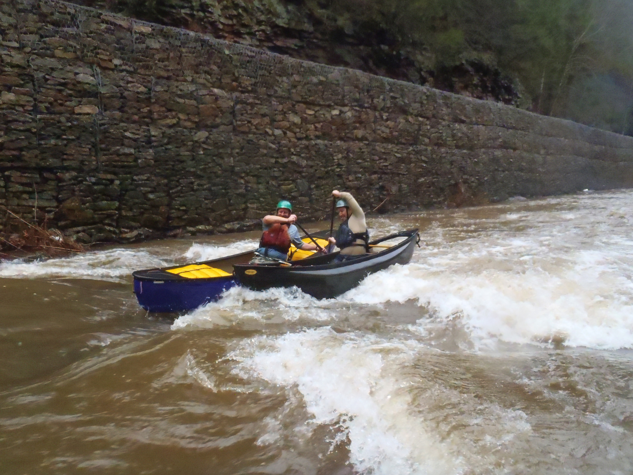 Sometimes, there’s just nothing you can do to stop an inevitable swim out of the canoe. As we dropped into a particularly nasty hole towards the end of our first run down the stream, the bow of the canoe wanted to go one way while the stern went another. As the canoe leaned and water began pouring in, I knew we were going out of the boat.