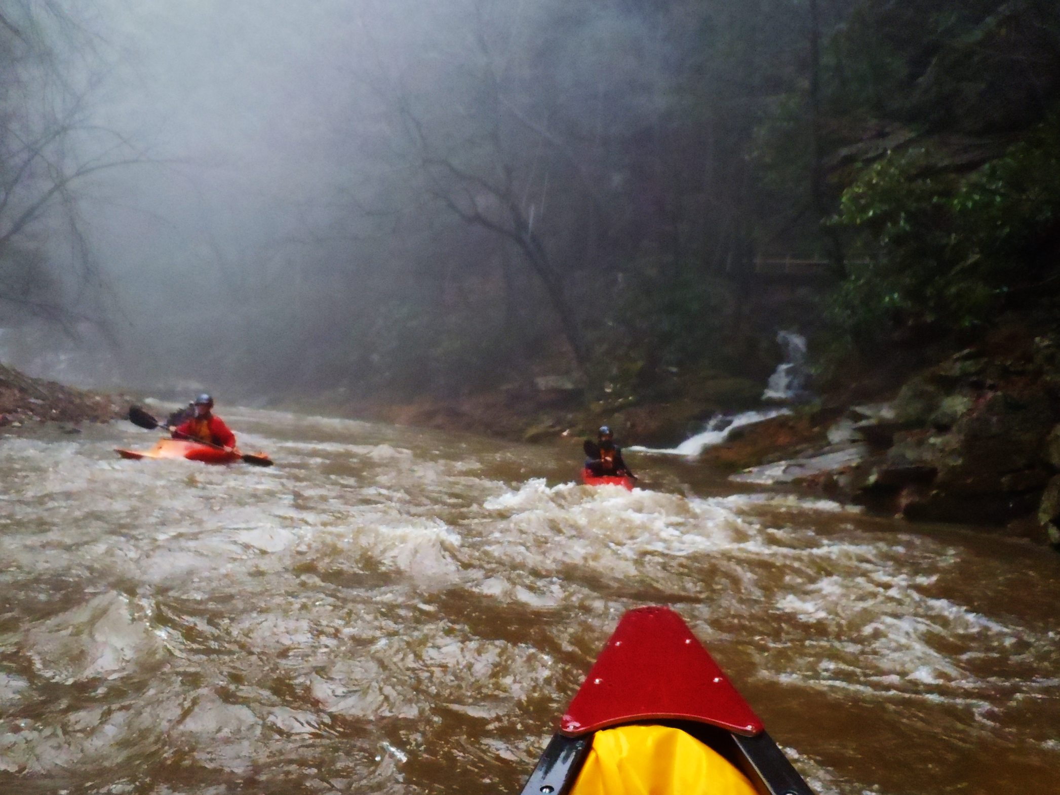 The plan today is to do 2 runs of Trough Creek, one in the morning and one in the afternoon, in order to make the most of the warm temperatures and high water. We down coffee and head out the door, meeting fellow paddlers Joe and Caleb down the street to caravan to the Creek, where we are joined by Tony, making our morning crew complete. We quickly set up shuttles and hit the water.