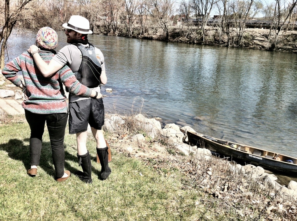 I missed the actual launching of the men and their canoes on their journey because I had some other commitments to get to, but my friend Erica (aka Jake’s significant other) grabbed a few photos, and will also be posting regular updates on their progress.