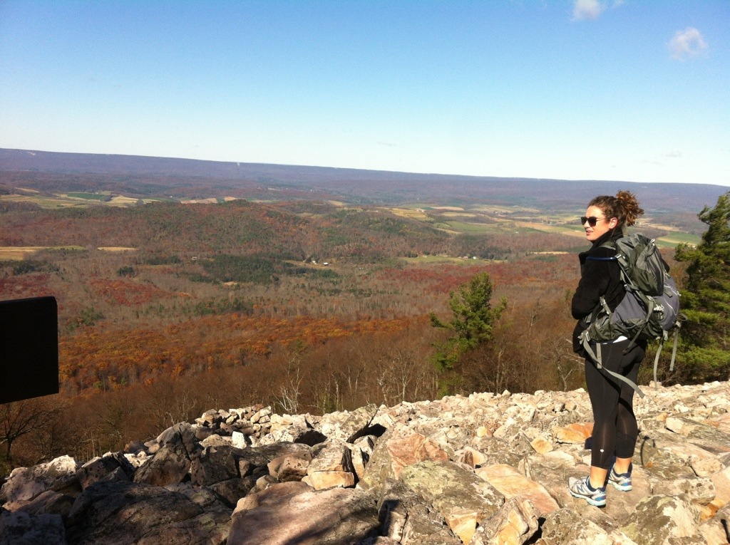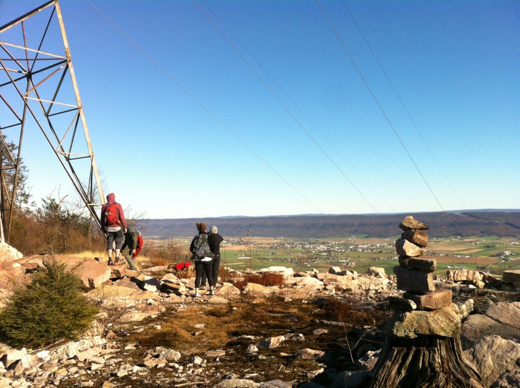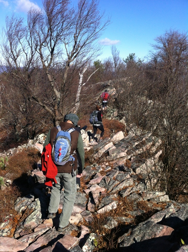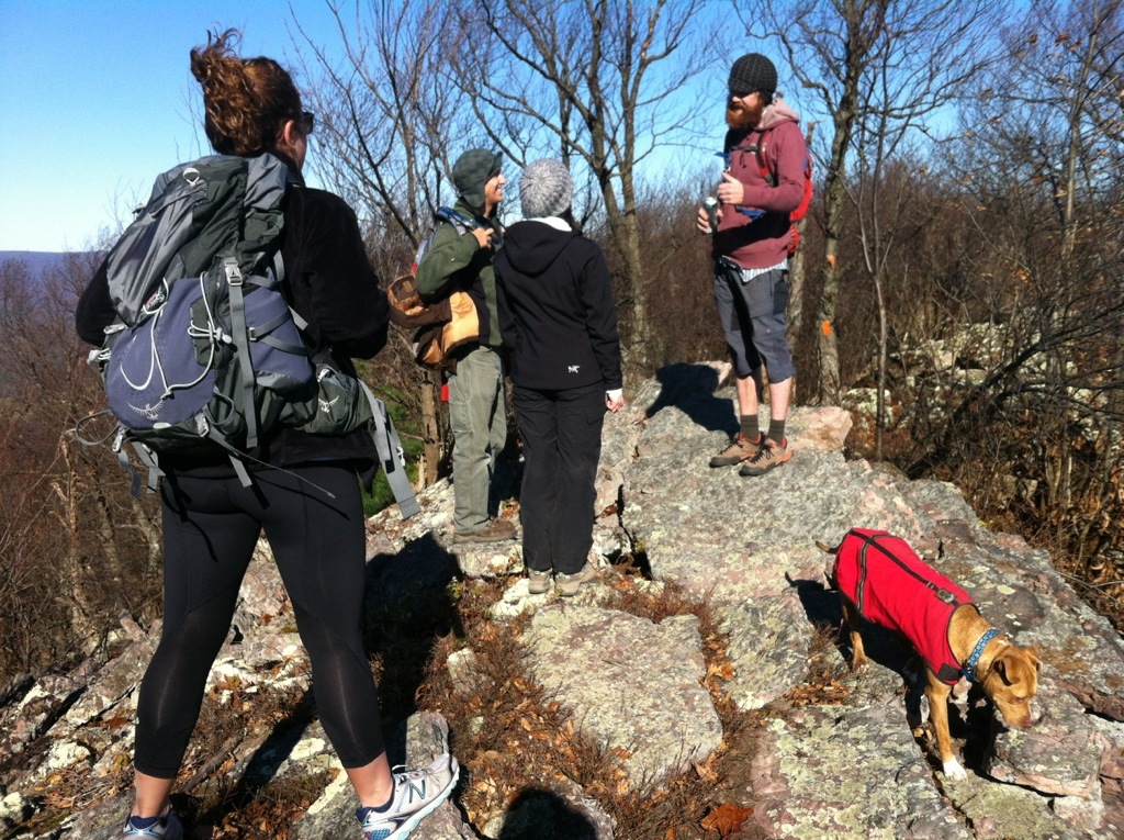 The section we ended up hiking was about 9 miles, which took us about 5 hours on the leaf-covered, rocky ridgetop. Some friends were in from out of town, and they joined us for the hike on a beautiful (though windy) fall day this past weekend. We left a vehicle at the end of the trail at Greenwood Furnace, then drove to the top of the mountain to begin our walk through the woods.