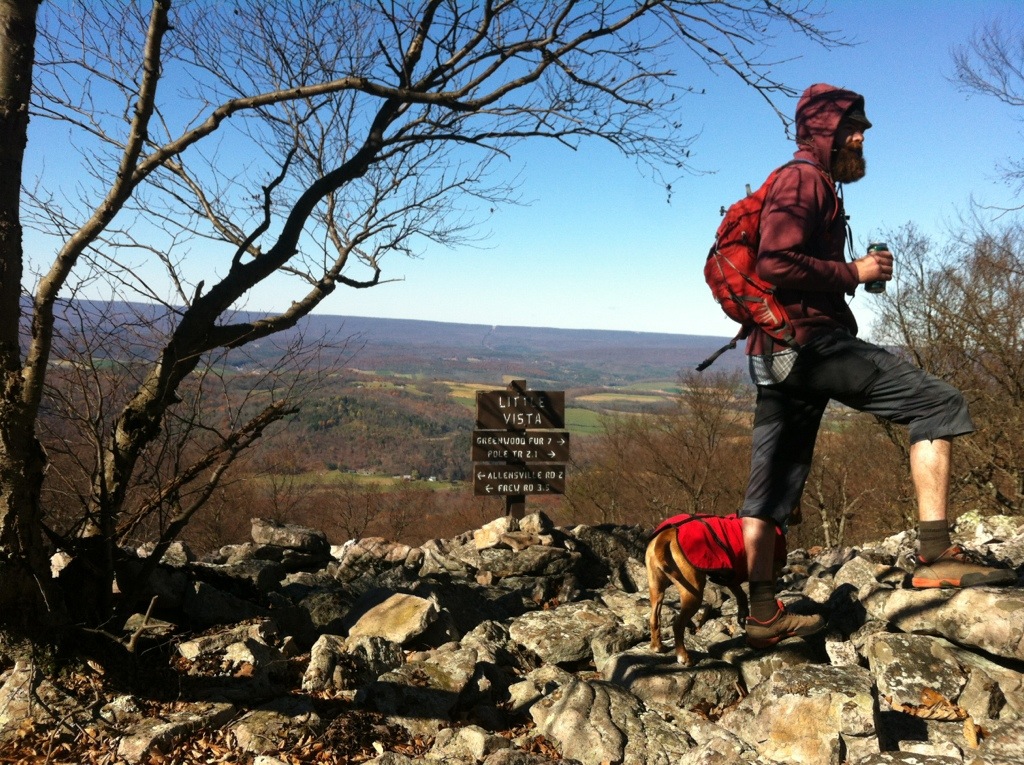 For a while now, ever since we moved into our new house, Evan and I had been talking about hiking a stretch of the Standing Stone Trail (SST) on Stone Mountain, the ridge we look at every day from our porch. The section of trail we’d been discussing starts at a hawk watch just off the road and runs along the ridgetop before descending into Greenwood Furnace State Park. Greenwood is the northern terminus for the 70-ish-mile (some sources say 76 miles, but the sign at the trailhead said 68) SST, which runs southward to Cowans Gap State Park.
