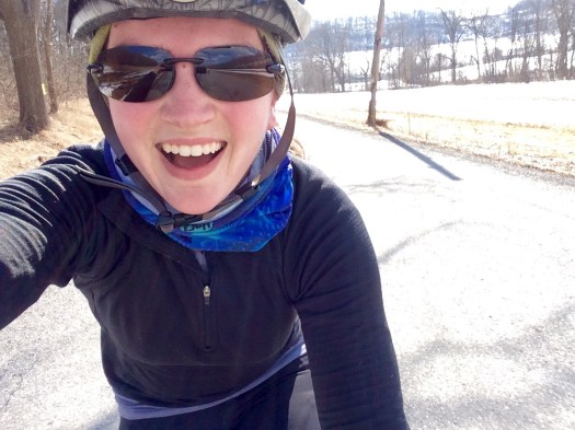 As we pedaled along, I thought about how great it was to be outside without a jacket and still be warm, how easy it felt to just ride along and not spin out every few feet from the slippery snow, and not have to push the bike up every hill. It was a delight to not have giant ice balls around my cleats, and a million layers around my body.