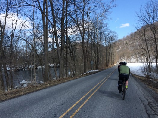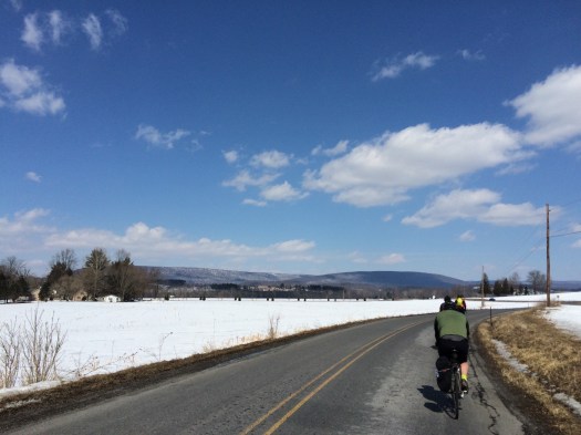 Sunday was the first really warm day of the season, with temps souring into the 50s and barely a cloud in the sky to boot. Luckily, it was also my day off. Trails and wooded areas were still pretty well packed in with snow and ice, so it was a fitting occasion to break out the skinnier tires and drop bars and put some miles in on some central PA back roads.
