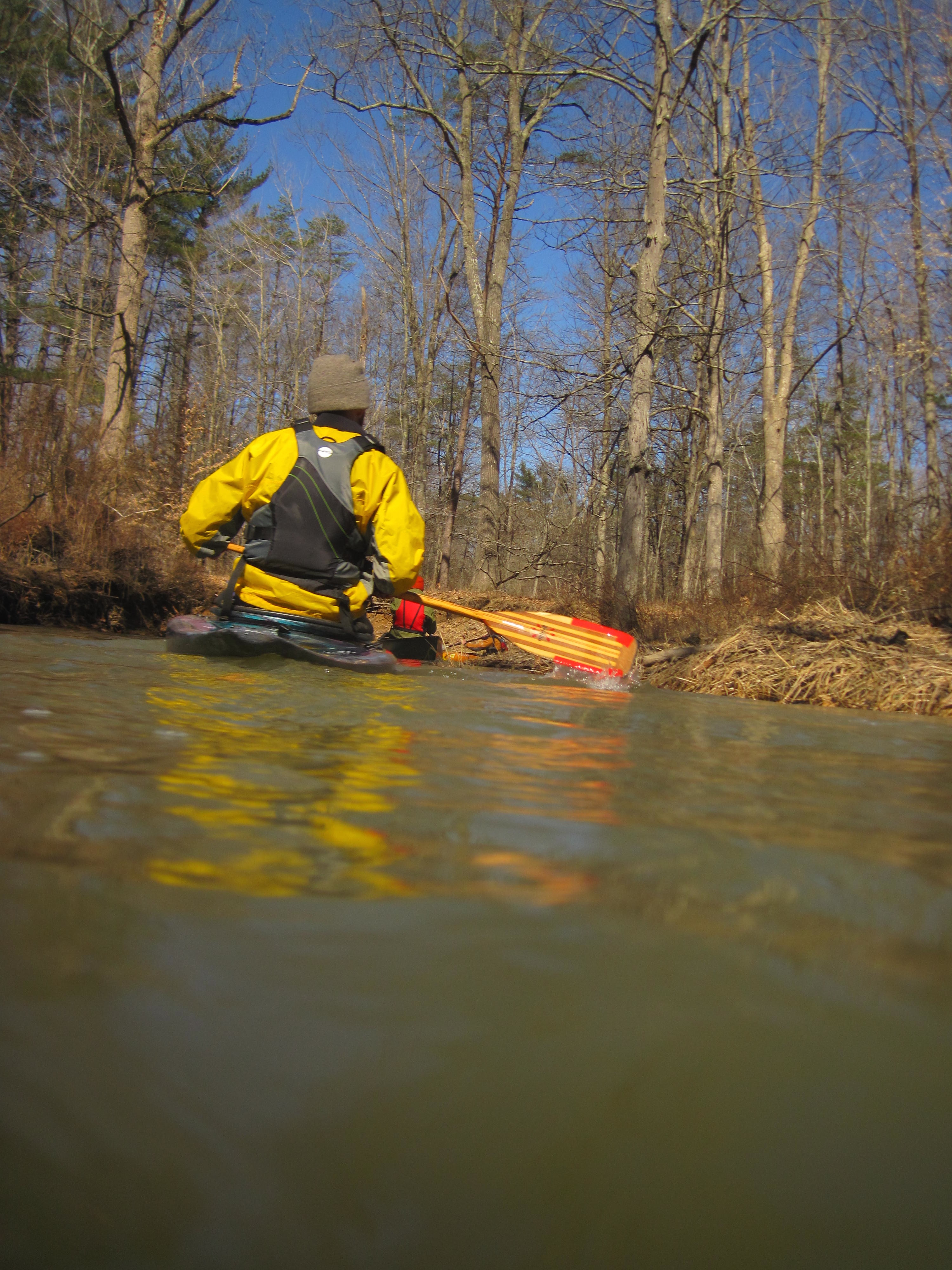 A group of us met early at our place, clad in neoprene and drytops. We hiked with our boats across Rt. 26 and put on the creek by 9am, a whole day ahead of us to figure out just what was in store. I had never paddled any of Stone Creek—I had only done a very small section in an inner tube quite a few years ago, and all I remember from that experience is a lot of walking.