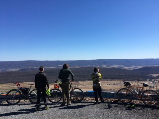 We hit the last pitch of the long, gradual climb up Licking Creek Drive and I actually feel better than I have all day. The descent down the other side is amazing – a mix of everything. We get muddy at the top where melting snow and slush still lingered on the gravel. The road dropped off sharply to the left, offering stunning views of the valley below. The bottom turned to pavement and offered swoopy turns and a final aero tuck into the wind to finish in McVeytown.