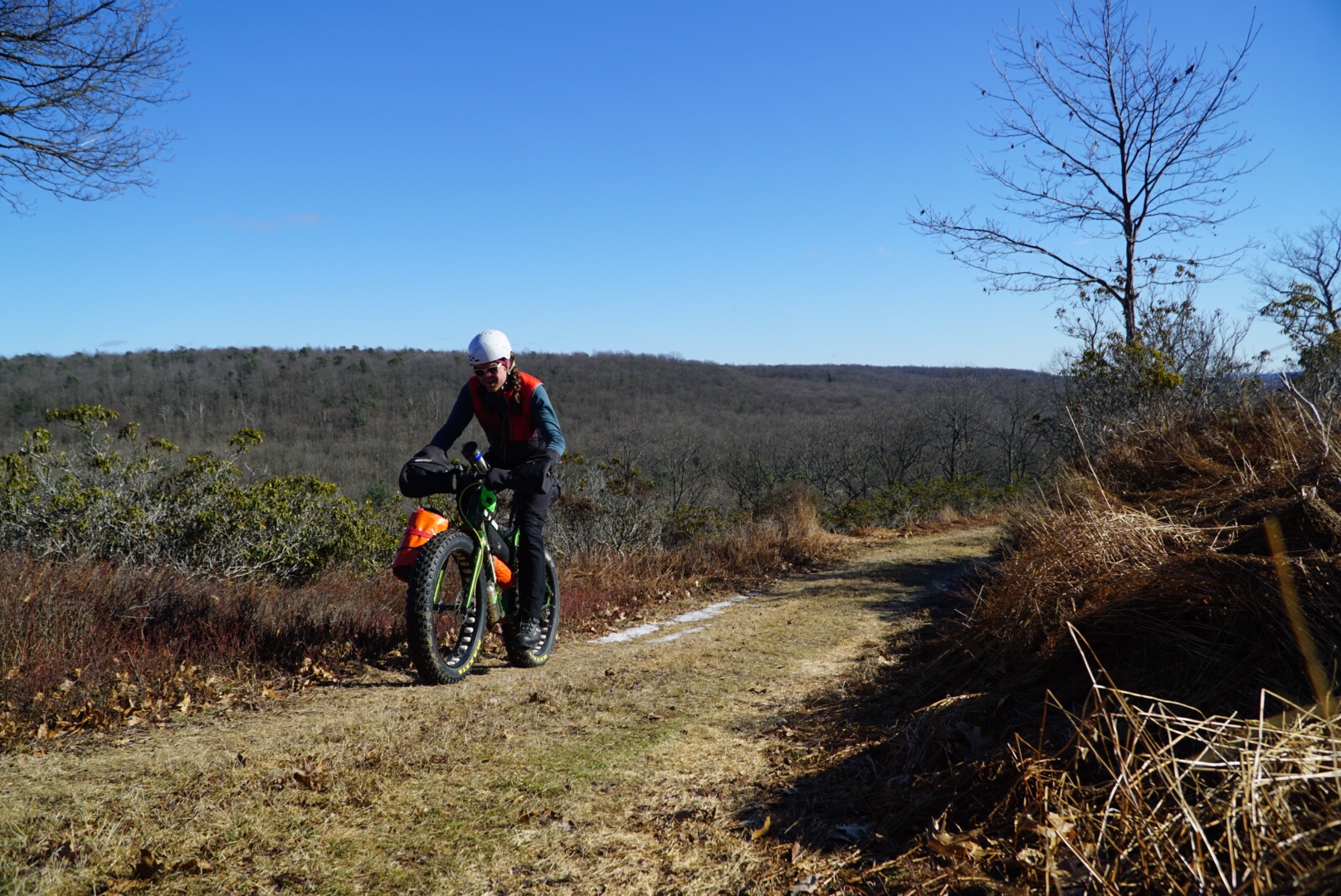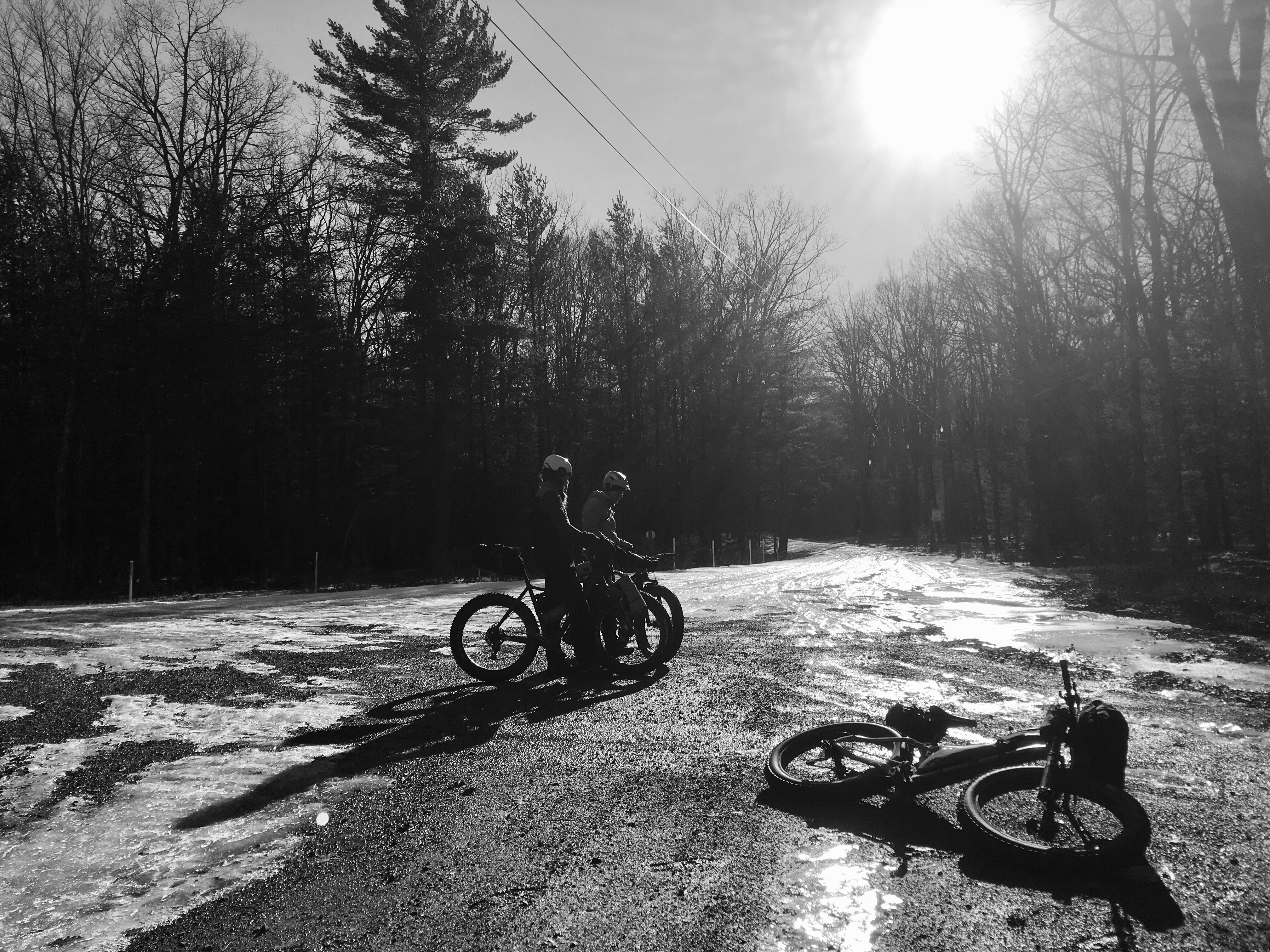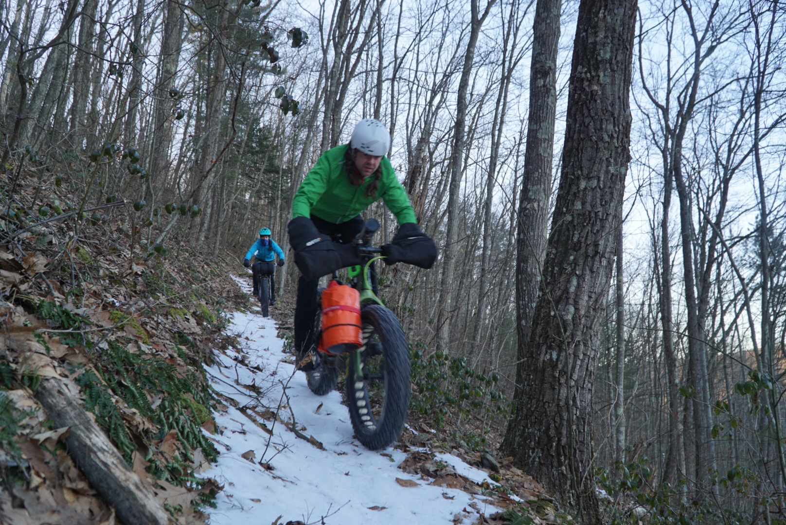 The next part of the ride was my favorite. We dropped down Bear Trap Trail, which was covered with a perfect amount of crunchy snow that left shimmering crystals rooster-tailing off our tires. The ever-sinking sun beamed picture-perfect rays of light through the pine needles. The gurgling ice-flanked stream to our right completed the idyllic image of winter in Pennsylvania. Though the trail was fast, faster than we’d been able to go all day, we all slowed to enjoy this moment, to relish in that feeling we live for —- to be outside in a beautiful place that we got to under our own power, with the camaraderie of good friends.