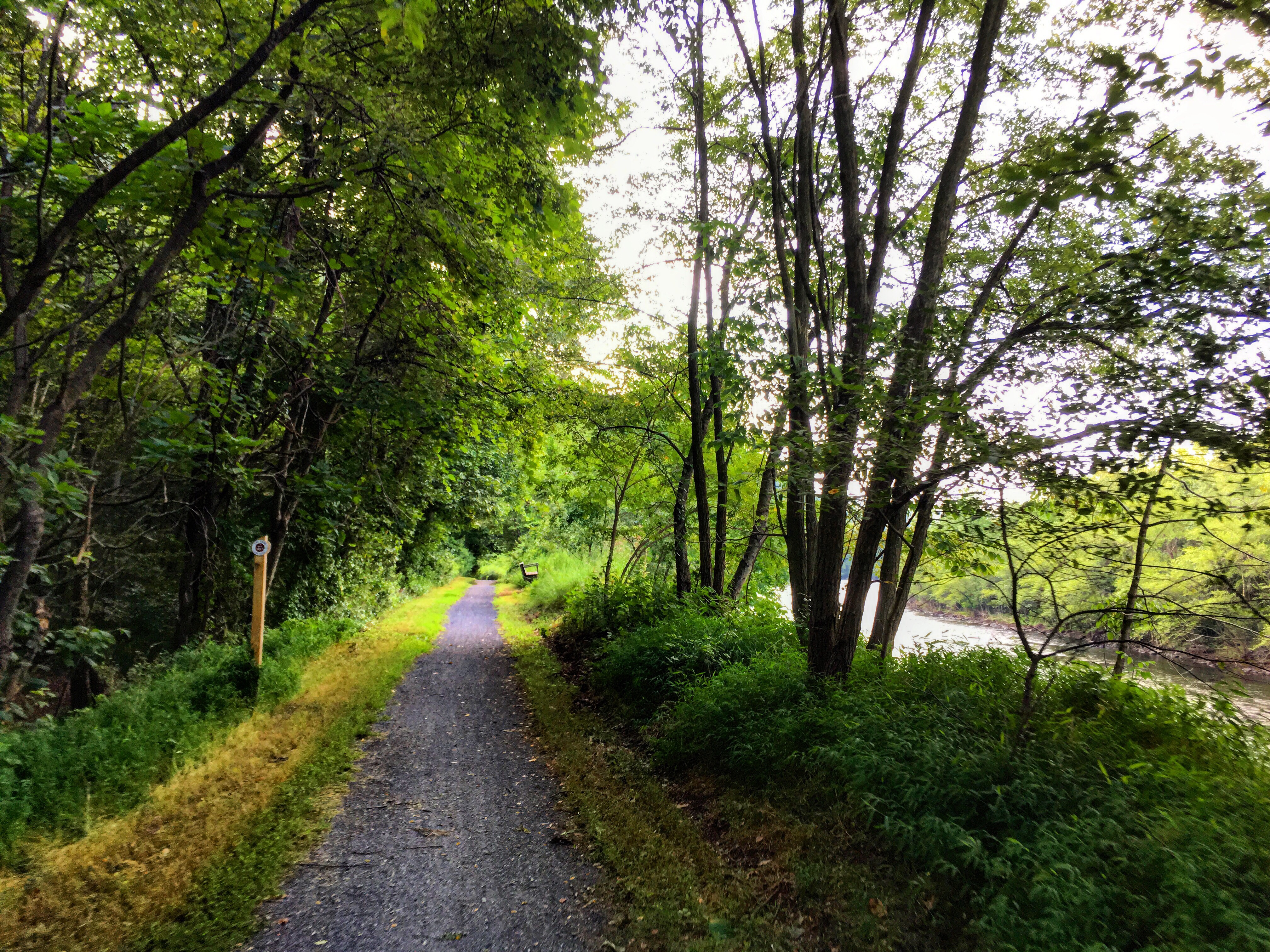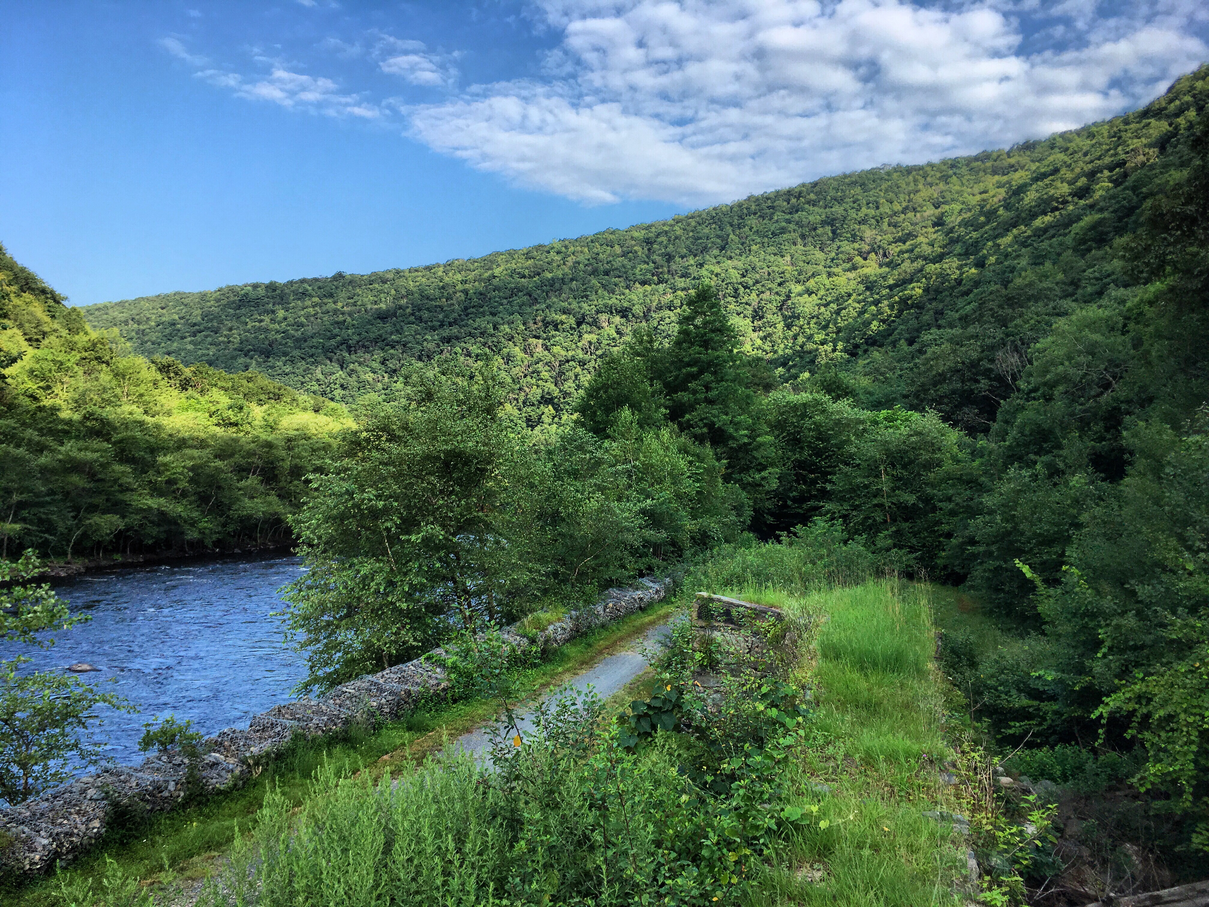 The section of trail south of Jim Thorpe was incredibly interesting, riding an elevated strip of land between the old canal and the river. There were also several intact locks along the way. In Lehighton, the trail shared the road briefly, and I somehow missed the re-entry, finding myself turning circles in an auto repair shop parking lot. I knew where the trail was, I just couldn’t figure out how to get to it from where I was. I started to backtrack, and a rough-but-friendly-looking older guy flagged me down.