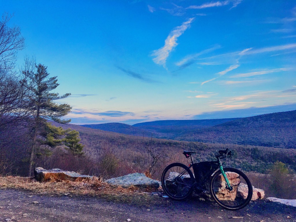 It is 25-30 miles and 2,200-2,500 feet of climbing one way depending on which route I take. There are 3 different fairly direct routes on a mix of gravel and pavement, all of which go through Rothrock State Forest to some extent. I could ride Route 26 all the way and it would be about 17 miles, but that’s not enjoyable and actually pretty frightening due to the amount of traffic and crazy drivers, especially at rush hour. Depending on conditions and my energy level, the ride typically takes me 2-2.5 hours. There are of course ways to easily extend my commute to include more mileage, climbing and different types of terrain. A commute using singletrack for a good chunk of the ride is also an option. Mine and Evan’s work situations are such that we carpool on a regular basis anyway, so doing the ride one way is logistically simple.