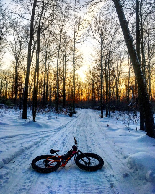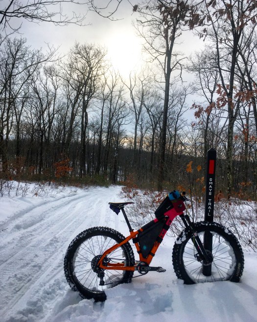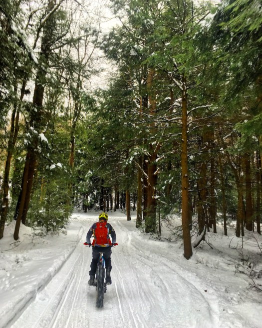 On the Solstice, I took off work and originally had considered doing a big sunrise to sunset ride — just over 9 hours. In the end, I wasn’t as excited about the idea as I felt I should be and lacked a good mindset for it, so I did a multi-sport day, starting with skiing for a couple hours at sunrise on the Allegheny Front Trail. I then met Shannon for 6 hours of fat biking on Black Moshannon’s snowmobile trails. Conditions were great — a little soft in the afternoon as temperatures crept above freezing, but never slushy. I did forget just how slow fat biking in fluffy snow can be (we averaged just over 5 mph), and by afternoon I was realizing that my initial plan to make it all the way around the lake in addition to hitting the plethora of trails on the northeastern side probably wasn’t going to happen.