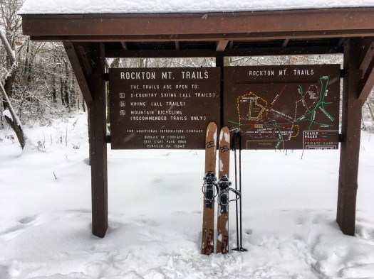The next day, I took advantage of some early morning motivation to check out some new-to-me trails on the skis. I was perusing the Purple Lizard map over my morning coffee at 5:30 am and found myself intrigued by the Rockton Mountain Trails. Google Maps told me they were only a half hour from Philipsburg, so I left in time to get there as it was getting light outside.