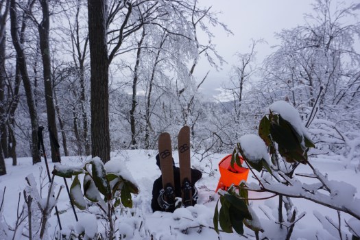 This year has provided a deep snow base that has opened up possibilities to explore in areas normally too littered with rocks and underbrush to be skiable. A solid 24-30″ up on the Allegheny Front allows us to ski on top of fallen logs and big boulders, carving turns down slopes that would be hard to walk through during the summer months.