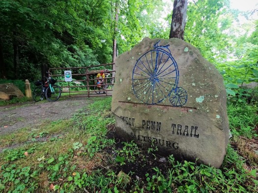 The WHT seamlessly connected into the West Penn Trail in Saltsburg. This was one of the sections of the ride I was most excited about. I’d heard that the West Penn is anything but a typical rail trail. It has sections of smooth and flat, but there are also sections that are more reminiscent of singletrack as well as some steep hills and even a hike-a-bike section.