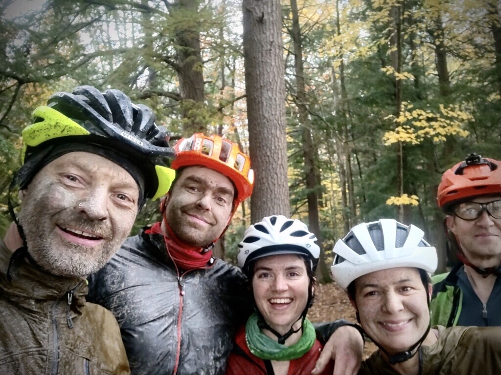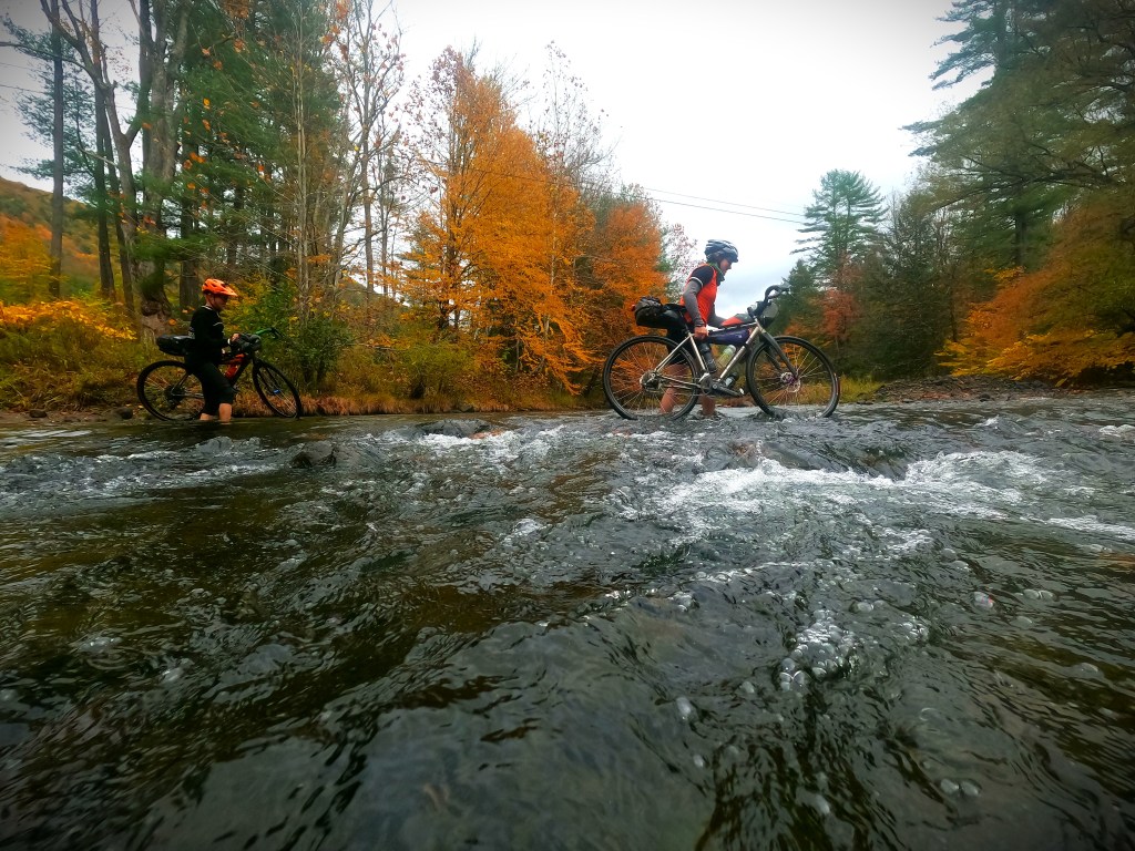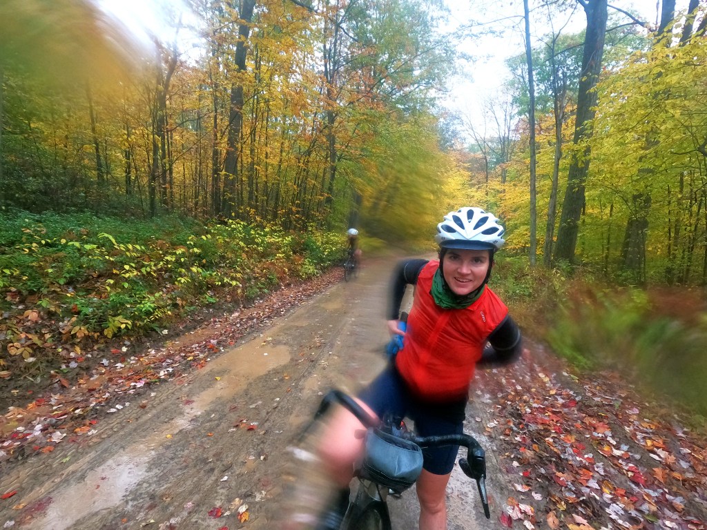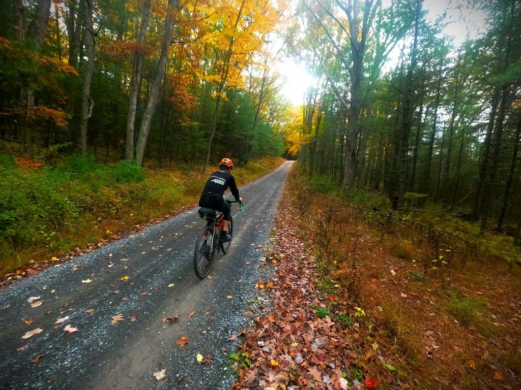 From Browns Run Road, we made our way to Rt. 44 for a brief stretch, where we followed the gravel snowmobile paralleling the road for as long as we could. Unexpectedly, it began to rain. Luckily, we were in the home stretch. I was not mentally ready to be soaked yet again for hours on end. Some of us donned rain jackets but I held off, figuring I’d just be too hot. I hadn’t worn a rain jacket most of the day before either, my water-resistant Pearl Izumi thermal arm warmers paired with a short-sleeve wool jersey and wind vest proving to be a perfectly comfortable combination in wet conditions.