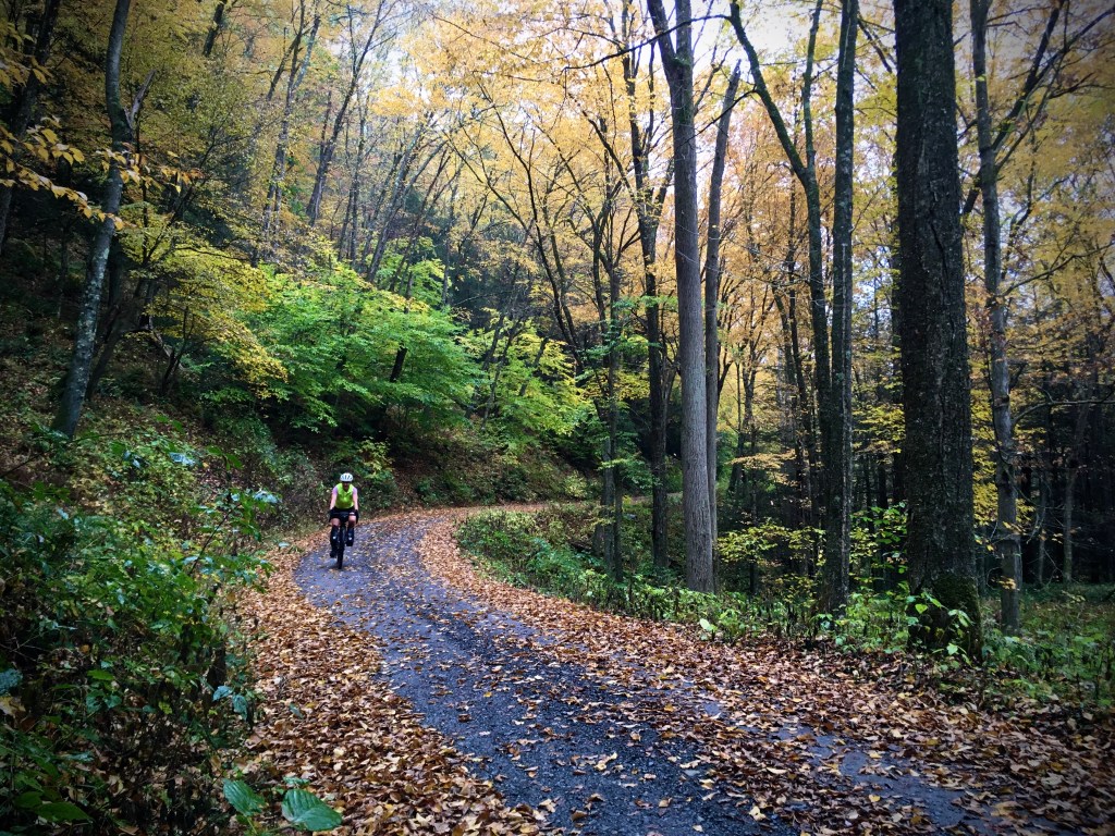 We began the climb up Beulah Land Road, the sun out now, the autumn colors absolutely brilliant and magical. My legs were finally warmed up and it felt good to push, so I charged ahead to the top, where the terrain leveled out onto a plateau. We all rolled fast as a group for the next 10 miles. Clouds rolled in, the brilliant sunshine disappearing into the afternoon.
