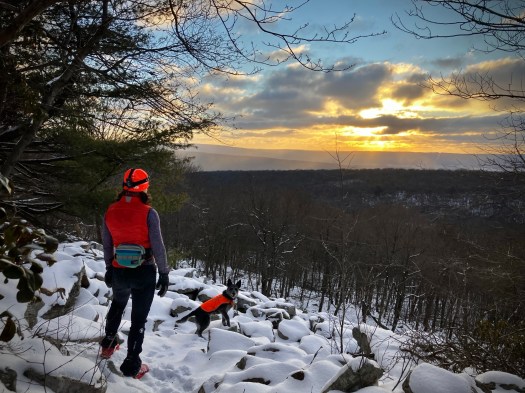Why spring? I naturally don’t want to run as much in the summer and there are some pretty remote sections of the AFT that get overgrown pretty fast once May hits. I decided that April would be the perfect time for an attempt — days long enough that I could theoretically get it all done in daylight (my goal is 12 hours or less) and hopefully temperatures that would be not bitterly cold but also not hot. My running buddy Barb was interested in doing it with me, and together we committed to a mid-April 2025 attempt. Another fortuitous alignment with timing was that our high-energy heeler puppy, Moon, was able to start running with me when she turned one year old in December, just in time for me to start training in earnest.