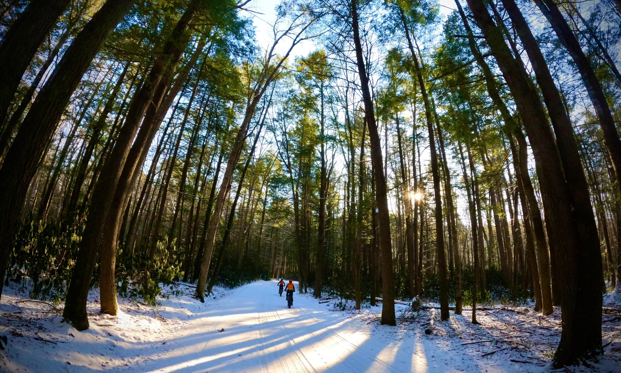 Conditions were absolutely perfect. The gravel roads had seen heavy snowmobile use since the snowstorm Saturday night, resulting in a packed highway for our fatbikes. It was cold -- in the low 20s -- but calm. I heated up quickly on the climb, opening up my vest and stuffing my heavy gloves in my stem …